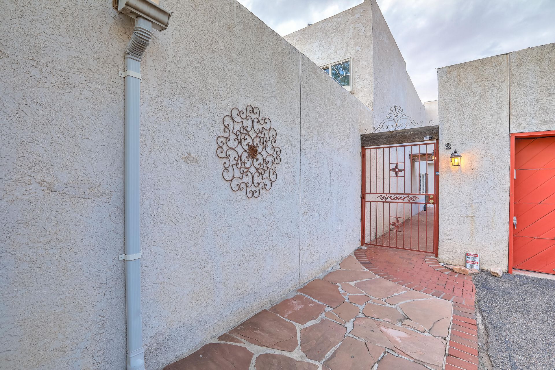 Step through the gated front courtyard and you'll immediately feel the charm of this Spanish Hacienda-inspired tri-level home. A covered patio with cafe lights and a peaceful koi pond and waterfall creates a true indoor-outdoor retreat. The dining room features a custom mural by a local artist and opens to the courtyard and pond--an unforgettable setting for everyday living or entertaining. Inside: 3 bedrooms, 2.5 baths, tile flooring throughout, two fireplaces, and a wet bar in the living area. The tri-level layout offers natural separation of space, with a loft above the primary ideal for a studio, office, or retreat. Nestled against the Sandia foothills with nearby trails and easy access to shopping and I-40.