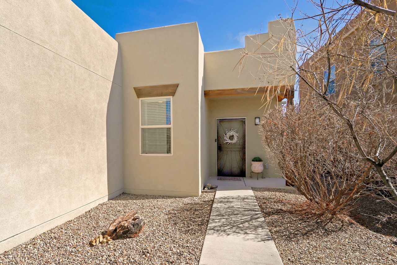 Light-filled and move-in-ready, this bright, charming single-level home in the enviable Villa Sonata neighborhood of Santa Fe, NM delights at every turn. Offering 3 bedrooms, 2 full bathrooms, and a versatile flex room, the open floor plan flows beautifully between the living and dining spaces. The kitchen is tastefully appointed with granite countertops and upgraded wood cabinetry, a functional and attractive space ideal for everyday cooking and entertaining. The thoughtfully designed split-bedroom layout places the primary suite away from guest bedrooms, creating a peaceful personal retreat. The flex room offers endless potential as a home office, TV room, kids' play area, or hobby room, giving you the freedom to adapt the space to your lifestyle. Recent upgrades include a two-year-old TPO roof and updated carpet in the bedrooms. Central air conditioning keeps the home comfortable year-round. Outside, a private, low-maintenance backyard offers a sweet setting for outdoor dining, weekend gatherings, or quiet evenings under the New Mexico sky, all without demanding yard upkeep. Located moments from parks, walking and biking trails, the Genoveva Chavez Community Center, schools, healthcare facilities, restaurants, and shopping. Quick access to I-25 and NM-599 connects you to Albuquerque, Los Alamos, and major employment centers throughout Northern New Mexico. Come see it for yourself and schedule your private showing today.