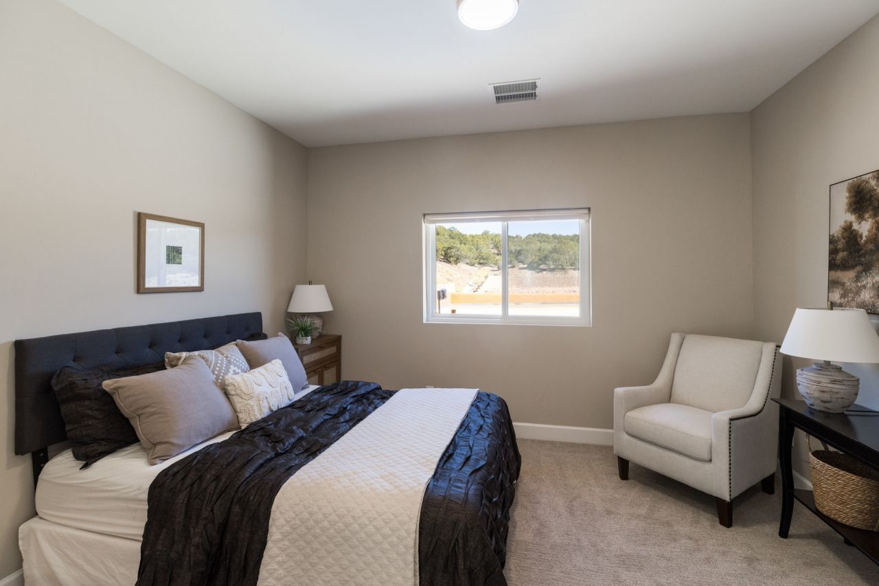 End-unit luxury, Santa Fe character, and modern comfort all come together beautifully. This light-filled, end-unit home mirrors the popular offers the added privacy, windows, and openness that make it truly special. Step inside to an inviting blend of clean modern design and warm Southwest charm. The heart of the home is an elegant, open-concept kitchen featuring upgraded appliances, sleek cabinetry, and solid-surface countertops that flow seamlessly into a bright living area?perfect for entertaining or quiet evenings in. Large windows flood the space with natural light, leading to a private patio that invites morning coffee or sunset wine. The spacious primary suite provides a tranquil retreat with a spa-inspired bath and generous closet space. Energy-efficient construction, an attached garage, and low-maintenance living ensure everyday ease. Nestled in one of Santa Fe's most desirable locations, residents enjoy proximity to downtown dining, galleries, and cultural landmarks, as well as easy access to scenic walking trails and open spaces. Discover the thoughtful design and comfort that define Abrazo Homes?where every detail is crafted for modern living with timeless appeal. Don't miss your chance to own one of the community's most coveted end units!
